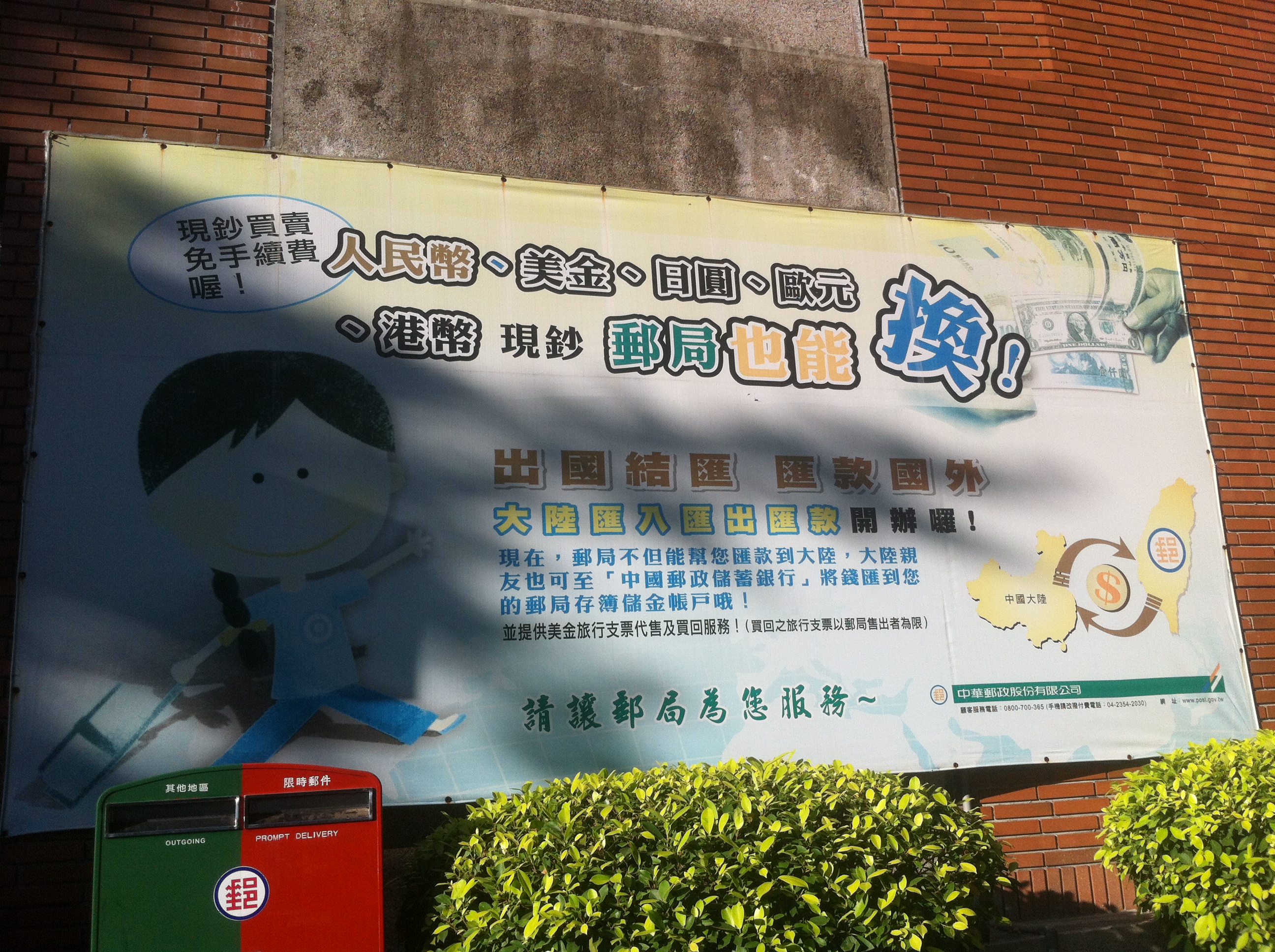 I think the Taiwanese post office has cut back on some of the variety of services that it offers nowadays, but it’s still extremely important for both providing banking services as well as handling mail. I highly doubt that any fewer than 99% of Taiwanese citizens have postal accounts. Instructions for receiving my payment in Taiwan usually include something like “after getting your residency card, open a post office account so we can transfer money to you” – there is no mention that you might go to a bank when you could go to the post office (well there are plenty of banks, too, but everyone just starts with an account at the post office first).