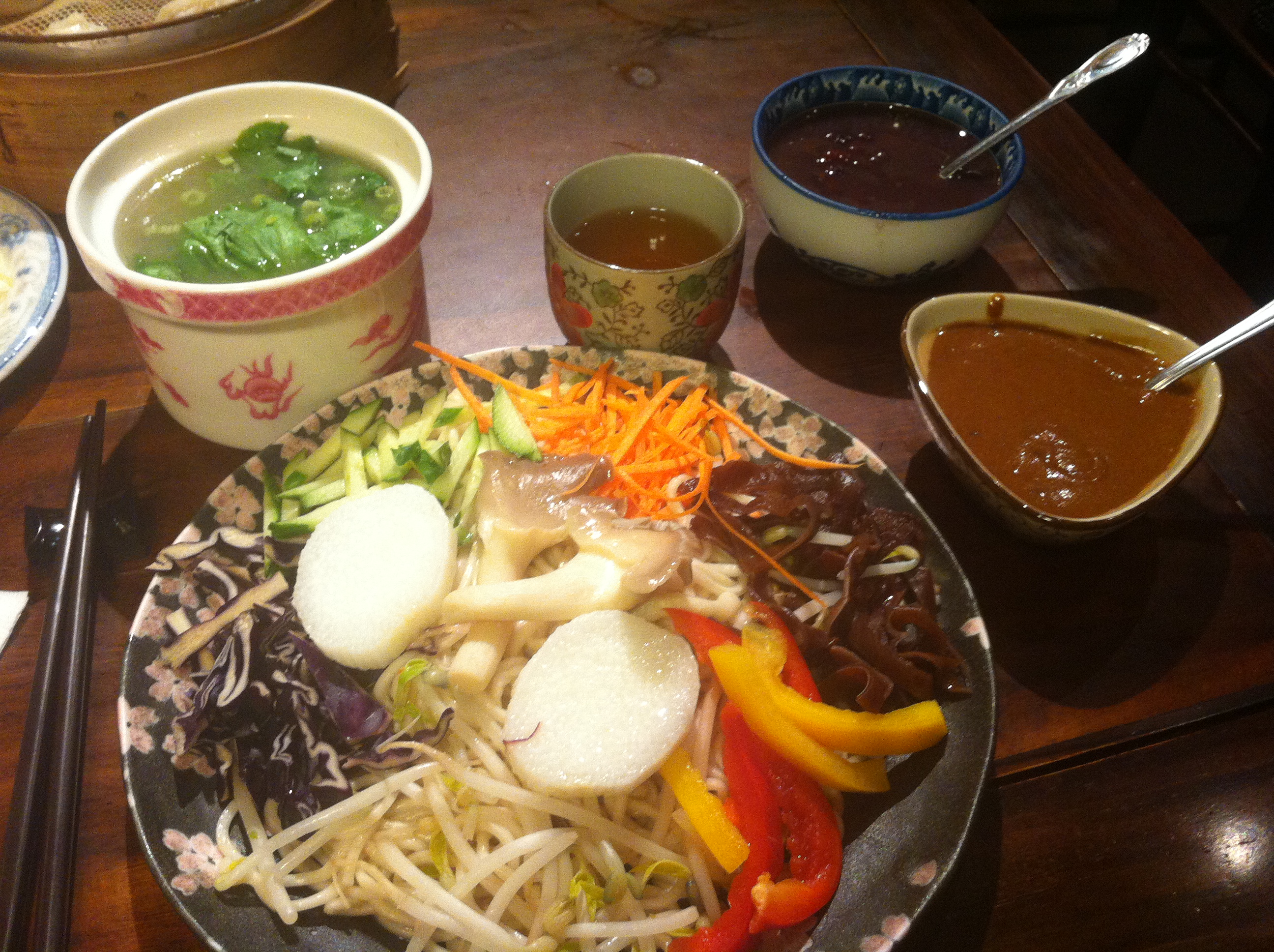 At first, the “foreignness” of food here allowed me to see it in a different light. The food items themselves are different from what I take for granted while living in the States. Of course, I ate apples when I lived in Rhode Island and Massachusetts – especially the ones that I went and picked off of trees in the fall. There was no reason to question that. And when it wasn’t apple season, or for most other that food that can’t be grown in New England, I assumed that it came from other places in the US like the Midwest, California, Oregon, Florida… But it turns out that there are apples on this side of the world as well – some that look exactly the same as the ones that I’m used to. Where did these come from? I know for sure they’re not coming a small New England orchard. Are they being shipped from the larger scale US farms or grown locally somewhere near here? And what about all the things that I haven’t even seen before – like dragon fruit, Buddha’s head and all the banana varietals? Where are those coming from? And those just are plain, raw foods – what about foods that have gone through more complex processing – like a bowl of noodles. Where did the rice/wheat/whatever else come from? Where was it ground into flour and then pulled into noodles?