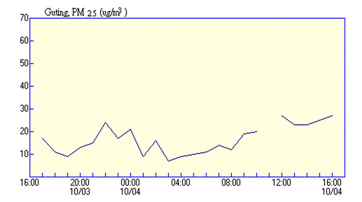 The two types of data collected and published by the Taiwanese EPA present slightly different pictures of the overall status of air quality. First, following are the latest measurements that are 24 hour averages measured for Taipei* and for Tainan.