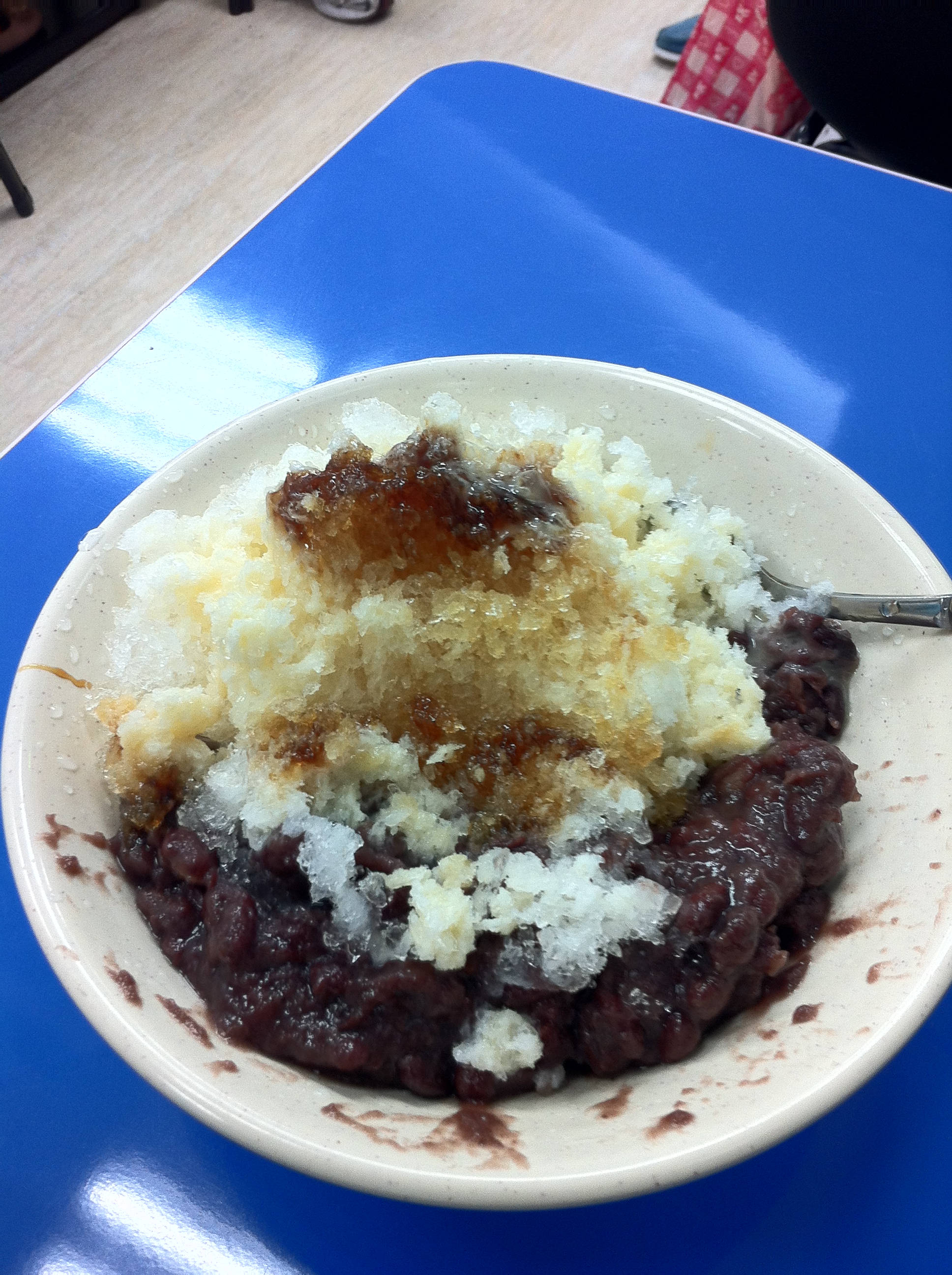 A classic Taiwanese snack – shaved ice. It’s great for when the weather is hot and you’re kind of thirsty, but craving sweet things (my constant state). I went for very simple and classic with this one – just some red bean, brown sugar and condensed milk. The ice was pretty granular at this shop – not sure if I like it that way…