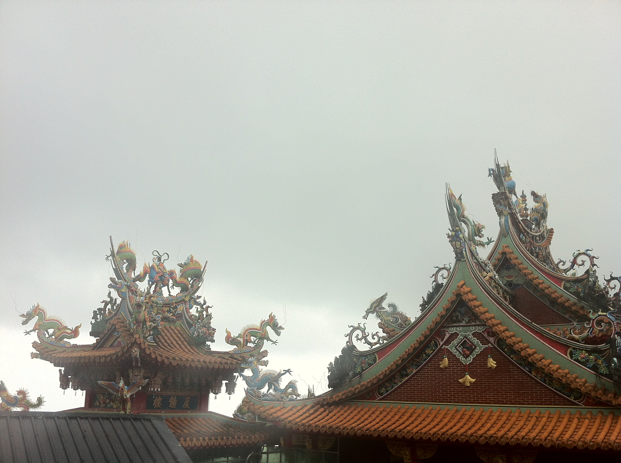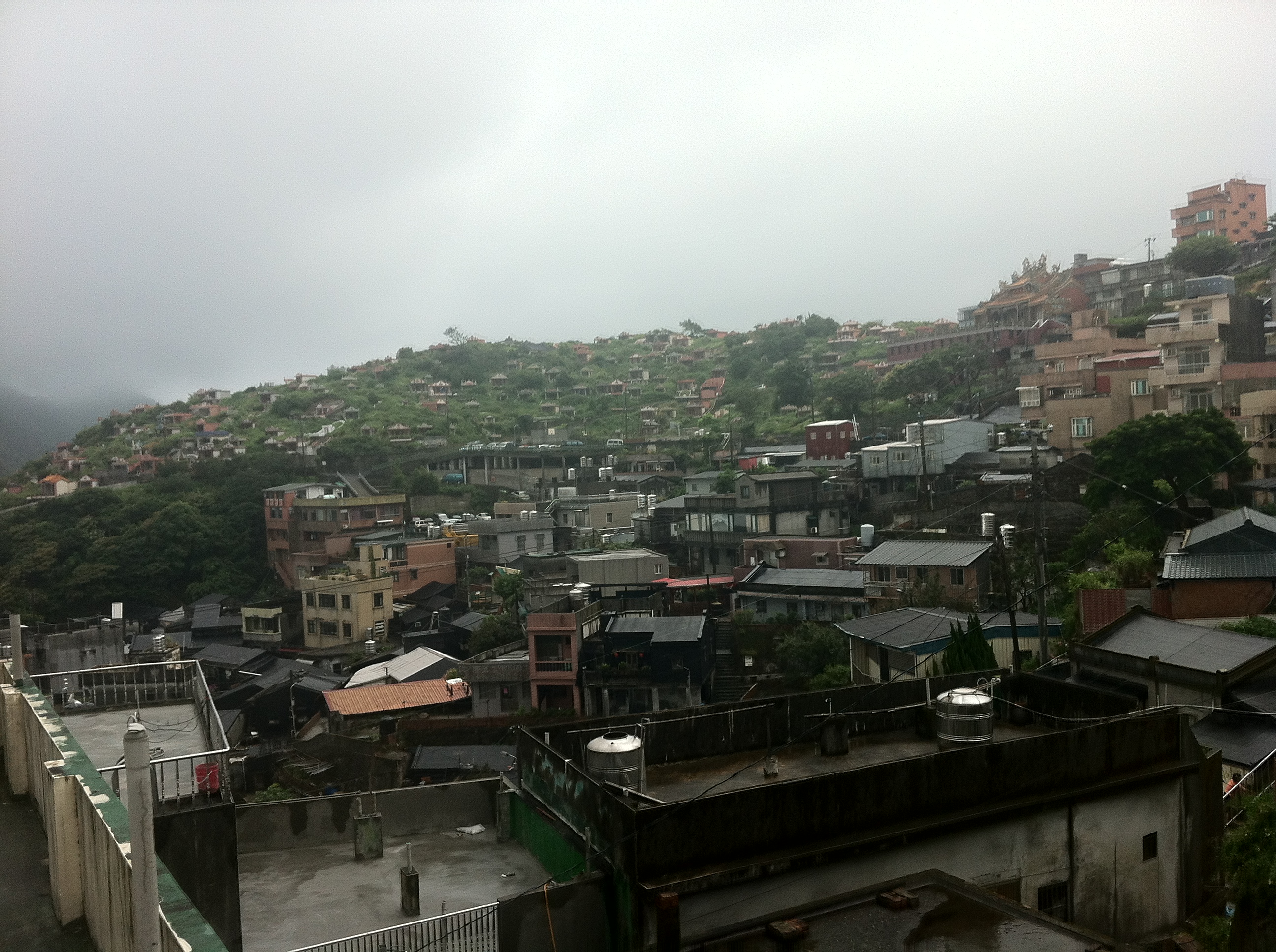 Now, Jiufen is a tourist attraction, originally sparked by a movie that featured it, but obviously sustained because of its beauty, idyllic nature, and good eats, of course. We ate, some of us climbed to the mountain peak near where we parked (which I have already forgotten the name of – so many mountains!) and headed home as the fog and rain descended once more.